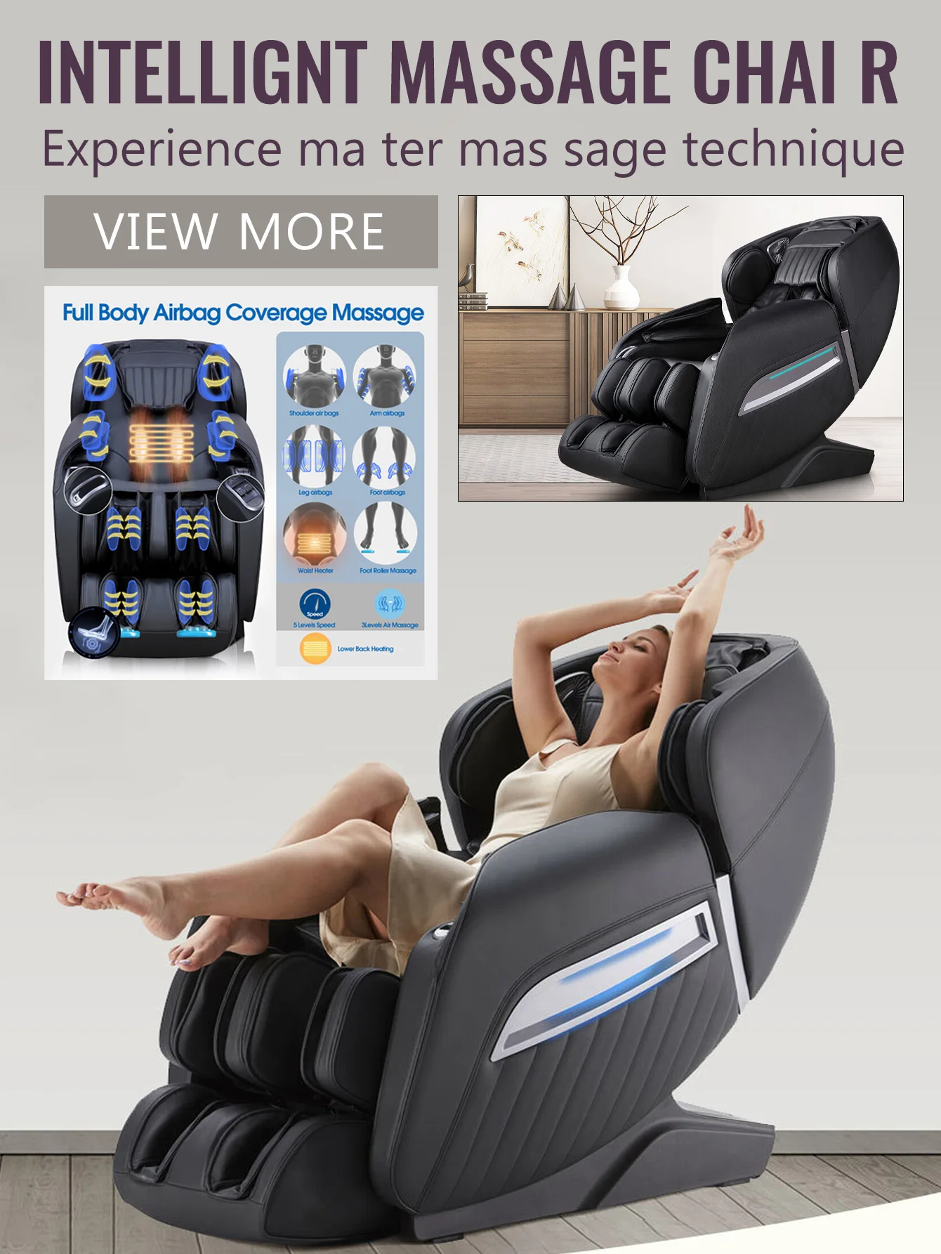 Full body deep tissue massage chair, foot massage, waist heater, zero gravity luxury massage chair quantity